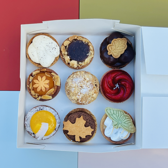 Boite festive de 9 desserts assortis du moment et emballage-cadeau.
